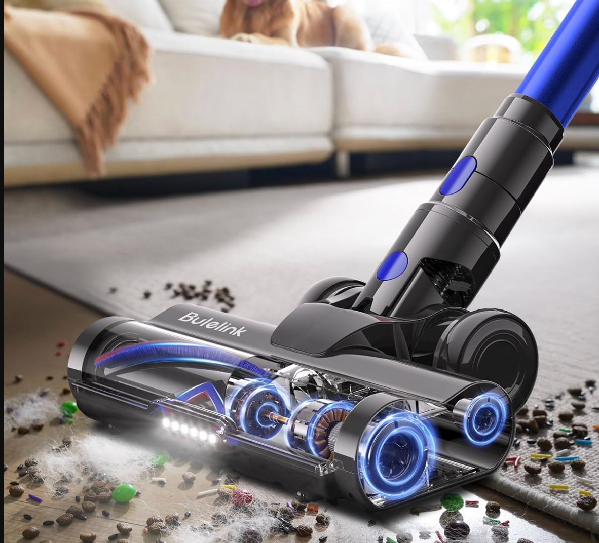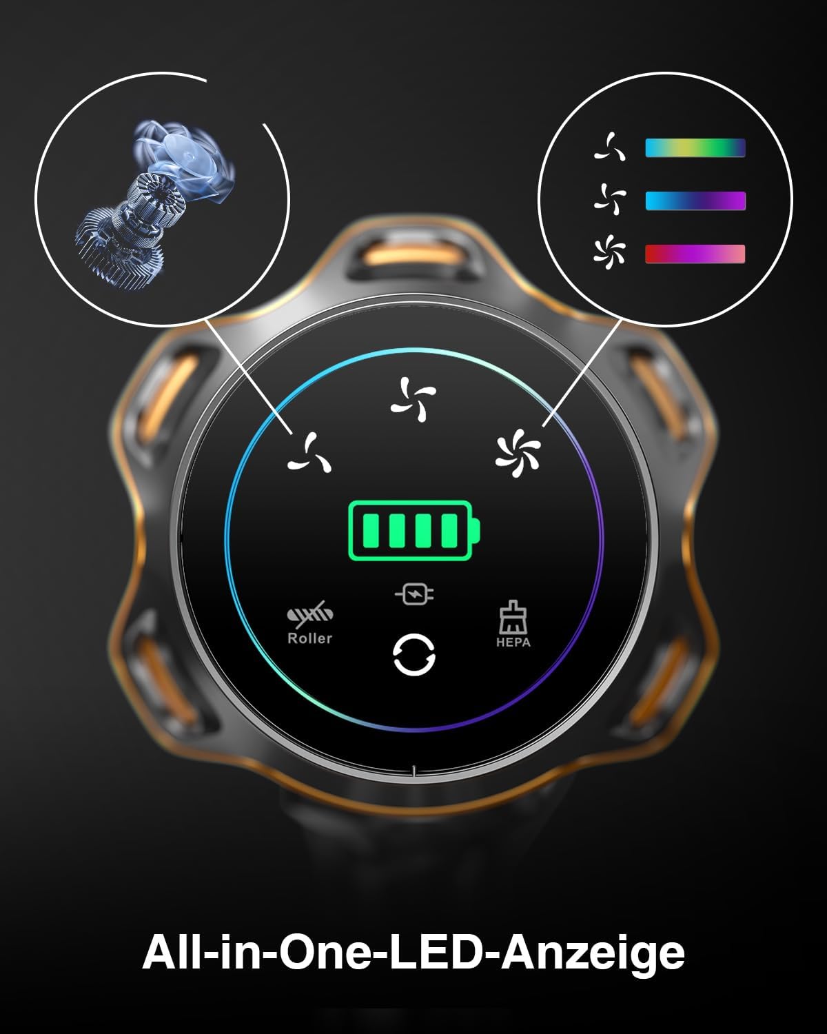 Kabelloser Akku-Staubsauger 45.000 Pa, 550 W, 65 Min Laufzeit, 1,6 L, Anti-Tangle-Bürste, leise, für Tierhaare & alle Böden